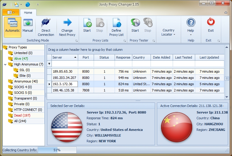 Jordy Proxy Changer is a proxy server software that automatically finds proxies and uses them in order to keep your privacy safe. This software includes a proxy management tool that allows you to find the best and reliable proxies so you can enjoy the best anonymously internet experience.