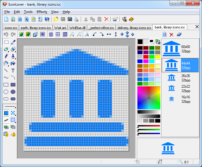 - 以标准或自定义尺寸创建和编辑色深达32位真彩色的图标