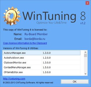 WinTuning 8 is designed to configure and optimize Windows 8, check the updates of installed programs, get access to more than 80 public and hidden tools of Windows 8, configure the boot, remove junk files from your hard drive, obtain information about your system, diagnose and troubleshoot operating systems and more.