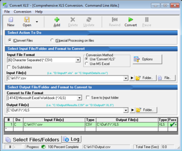 Convert XLS is a simple to use, yet sophisticated Excel converter utility specifically designed for Excel, text and CSV (character/comma delimited) files. If you need to convert/manipulate one or thousands of files, located in one or many folders this is the tool! Conversions can be done 10-15 times faster without MS Excel.