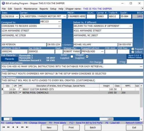 The Star Bill of Lading (SE) Single User Edition program is capable of printing all of your Bill of Lading short form requirements to a standard InkJet or Laser Printer. It saves you Time and Money every time you use it. No more Expensive Forms to purchase. No more hand writing or typing to a form is needed. Simply fill in the product shipment info, select a trucking company, click on Print and you’re done. There is a default number of copies that you define. It can’t be any easier. The software keeps a log of all your BOL’s, for research purposes or to reprint. You can also Copy/New. This creates a new BOL from a copy. There are many features to help you in this process.