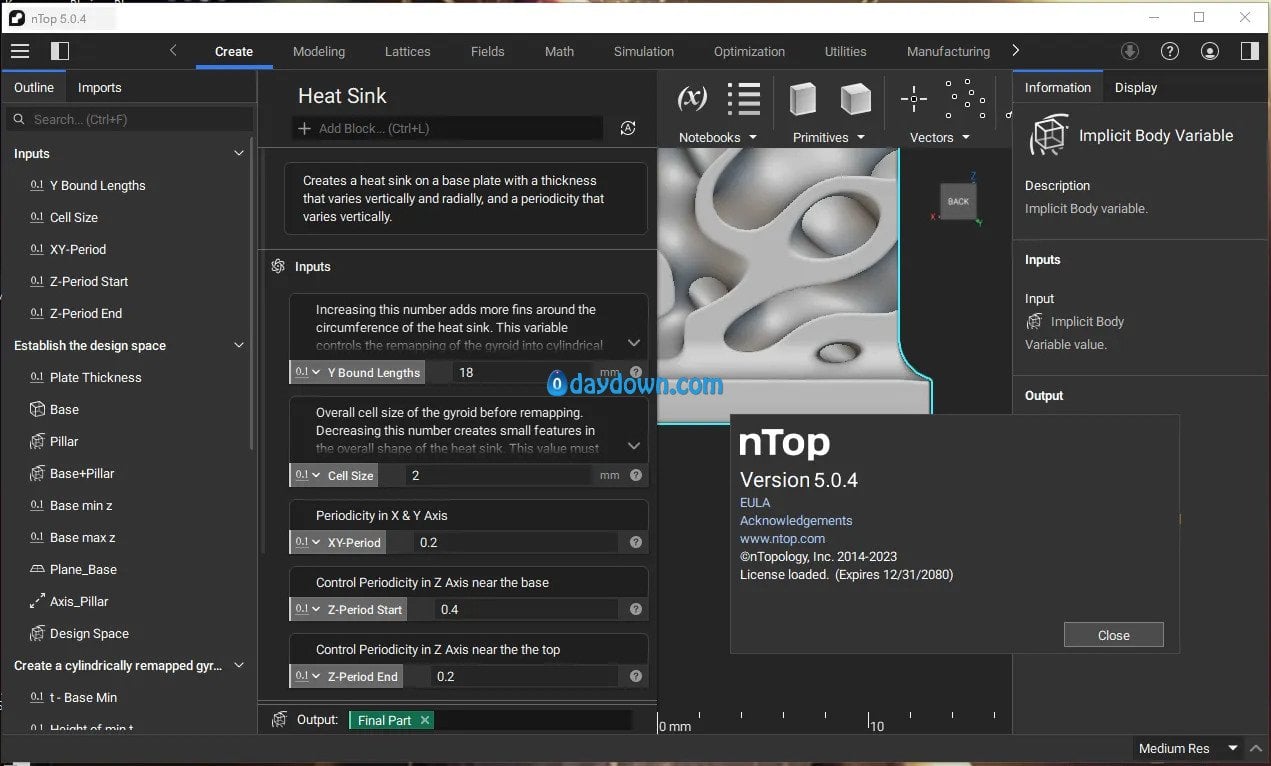 nTopology is pleased to announce the availability of nTopology  This major release includes our new implicit modeling kernel, parallel surface remeshing, and the ability to import implicit body features. This release also refreshes the viewport with CAD color import, customizable glyph colors, and right-click menus.