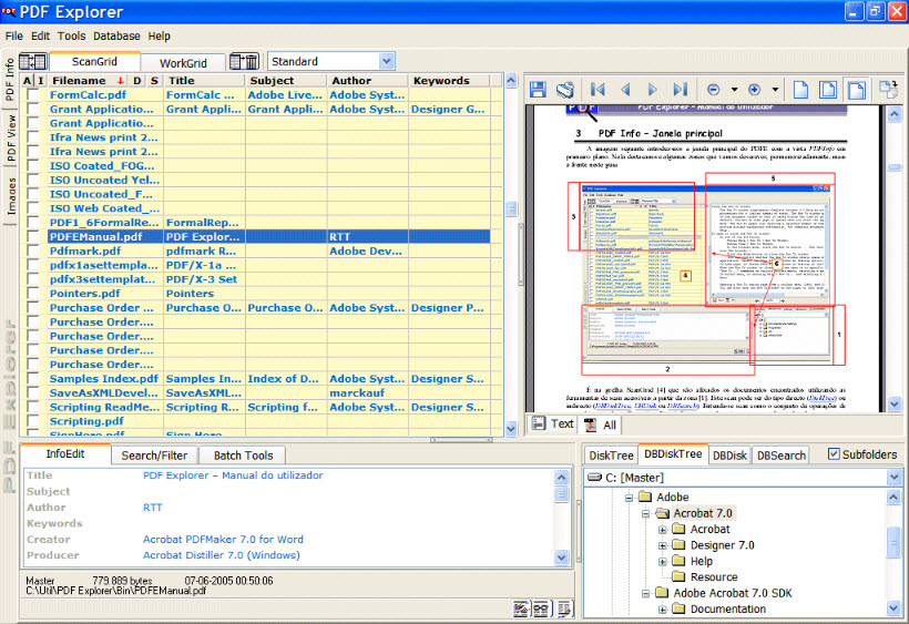 PDF Explorer is a PDF and CHM file management software. It allows the effortless indexation of our PDF and CHM documents in a database using several metadata fields. With PDF Explorer we can easily index our entire collection of documents, spread by several disks, network places and also within ZIP, RAR, 7Zip and ACE compressed archives.