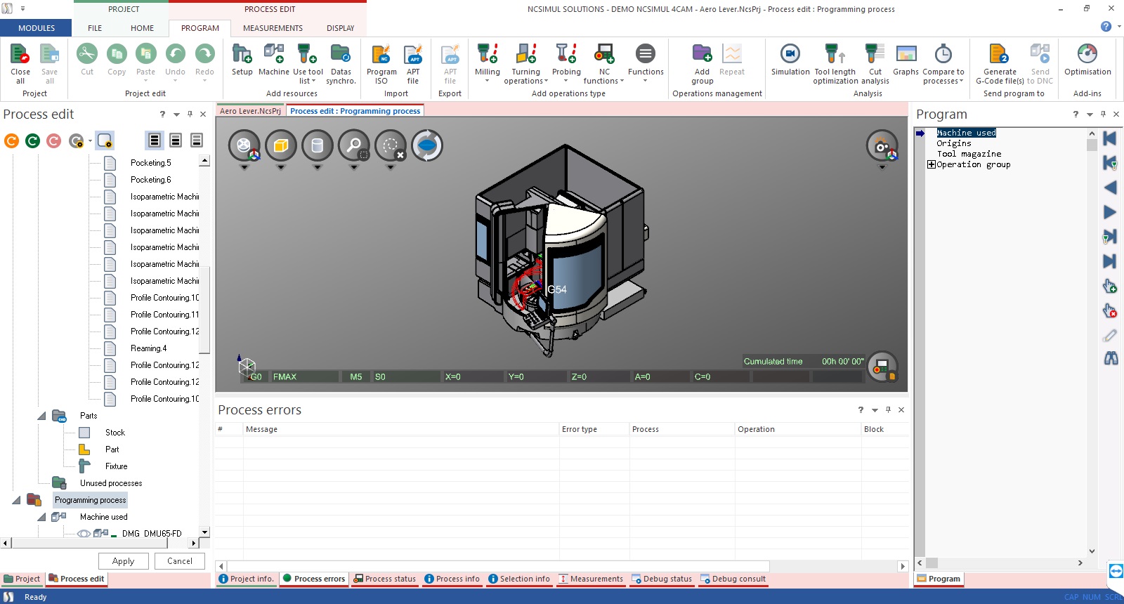 Users can edit the parameters of the cutting tool and the machine, make changes in the orientation of the tool, and add or remove points on the path. All changes made are saved in the history and in the settings of the processing parameters regardless of which machine is used, and programmers can change their status with one click. This makes it easy to track changes, which significantly saves manufacturers time. NCSIMUL MACHINE module for processing simulation