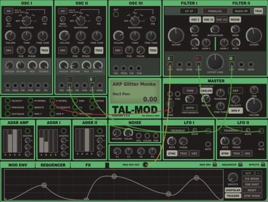 TAL-Mod is a virtual analog synthesizer with an exceptional sound and almost unlimited modulation possiblities. Its special oscillator model is able to create a wide range of sounds, from classic mono to rich stereo leads, effects and pads. Routings can be done with virtual patch cables. Just connect a modulation output with a modulation target. After that it’s possible to adjust the intensity of the modulation. You don’t need to be a modular expert. The plug-in is suitable for beginners and experts!