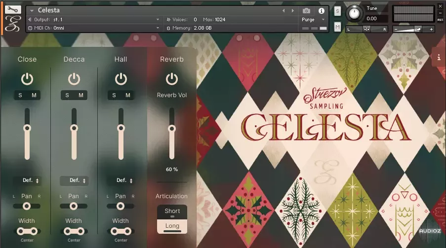 For maximum flexibility, multiple signal paths provide control over the instrument’s depth, complemented by a custom reverb tailored to its tone. Long and short articulations feature distinct release tails, offering precise control over natural reverb and resonance in your Celesta parts.