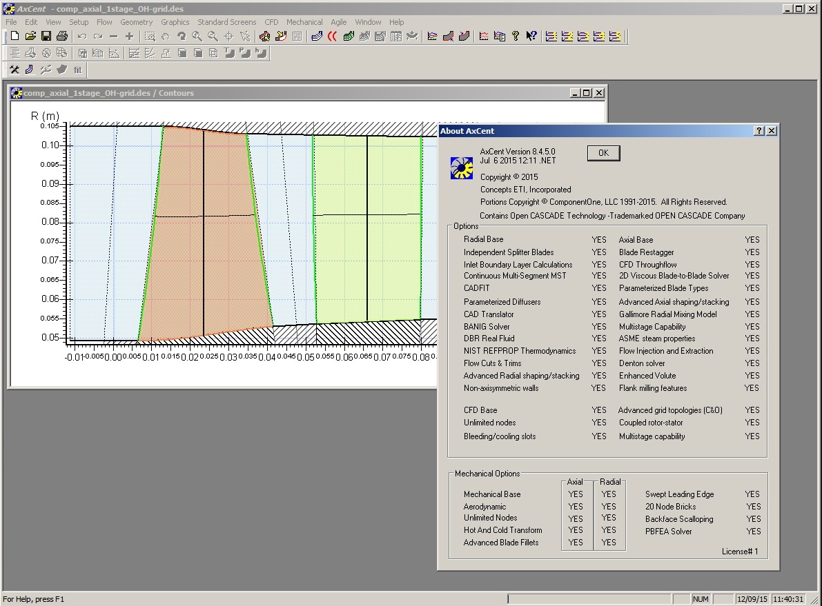 This program is used for detailed 3D geometric design and for rapid flow analysis of multistaged axial and radial turbomachinery through streamline curvature. AxCent employs powerful features for axial, mixed-flow, and radial geometries that can be combined to design almost any turbomachinery.
