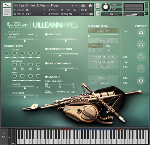 The Uilleann Pipes are the national bagpipe instrument of Ireland. It’s unusual and complex one in its construction, requiring from a player quite a bit of mastership. With this library – a complicated instrument like the Uilleann Pipes – now becomes easy available to anybody!