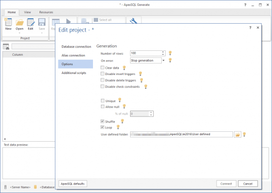 ApexSQL Generate generates test data for specified columns and tables. It exports test data to SQL, XML, and CSV files, or executes it directly against the database. Use a wide range of predefined options to customize the data, like setting the seed, length, minimum and maximum values, uniqueness of data, and percentage of null values. Preview generated data before executing or exporting. With ApexSQL Generate you can quickly generate millions of rows of test data. Use different generators such as Random, Incremental, From list, From table, From directory, From query, and From CSV. It has intelligent auto-creating of data patterns at row level, supports a wide variety of data types, including geography, money, and hierarchyid.