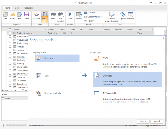 ApexSQL Script is a SQL tool that converts Databases into scripts, .NET EXE’s, deployment packages or into source control. Scripts are ordered based on proprietary dependency algorithms to ensure proper order of generated scripts. They can be created from Databases or Source control labels (all SCC compliant source control systems are supported) and it also includes a Command Line interface. ApexSQL Script allows a rich array of value added scripting attributes to embed customizable text, tags, dates, comments etc. into your scripts to transform your output into a richly tailored output that comes in a variety of formats.