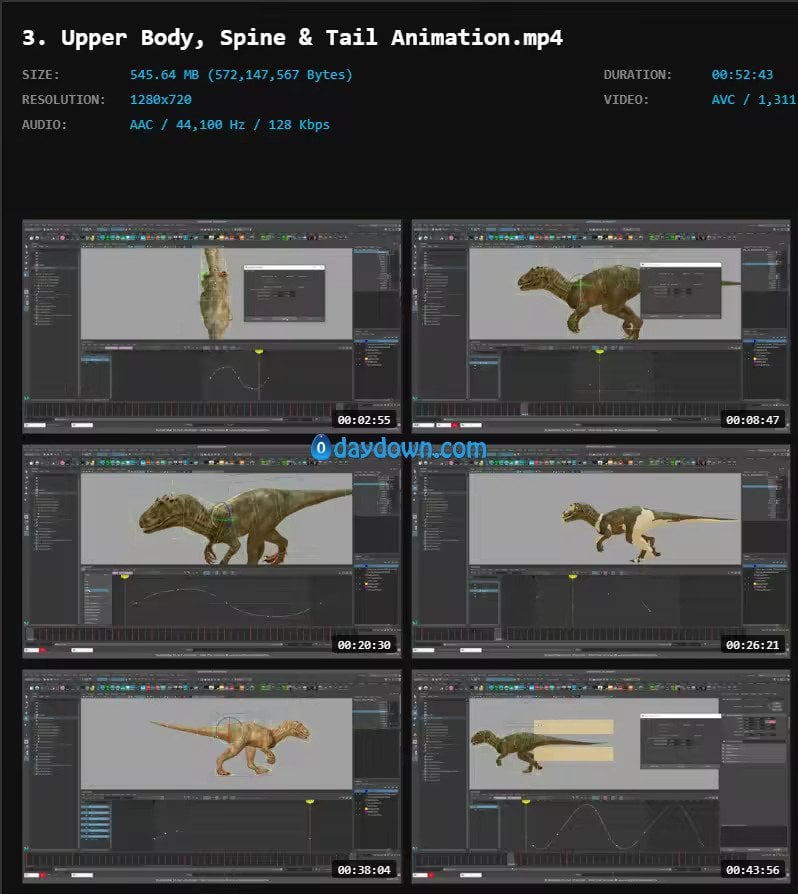 ✓ Animate convincing dinosaur weight shifts, hip drive, tail counterbalance, and predator rhythm.