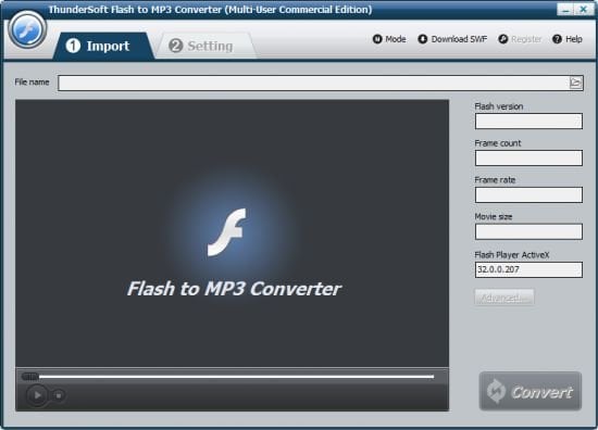 ThunderSoft Flash to MP3 Converter is a professional Flash converter for Flash SWF to MP3 conversion. It helps to convert the sound in the Macromedia Flash SWF to MP3 with high quality sound effect.