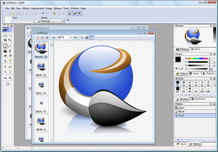 IcoFX features a full blown image editor with many useful tools. You can use different brush sizes, shapes, hardness, even blending modes when painting.