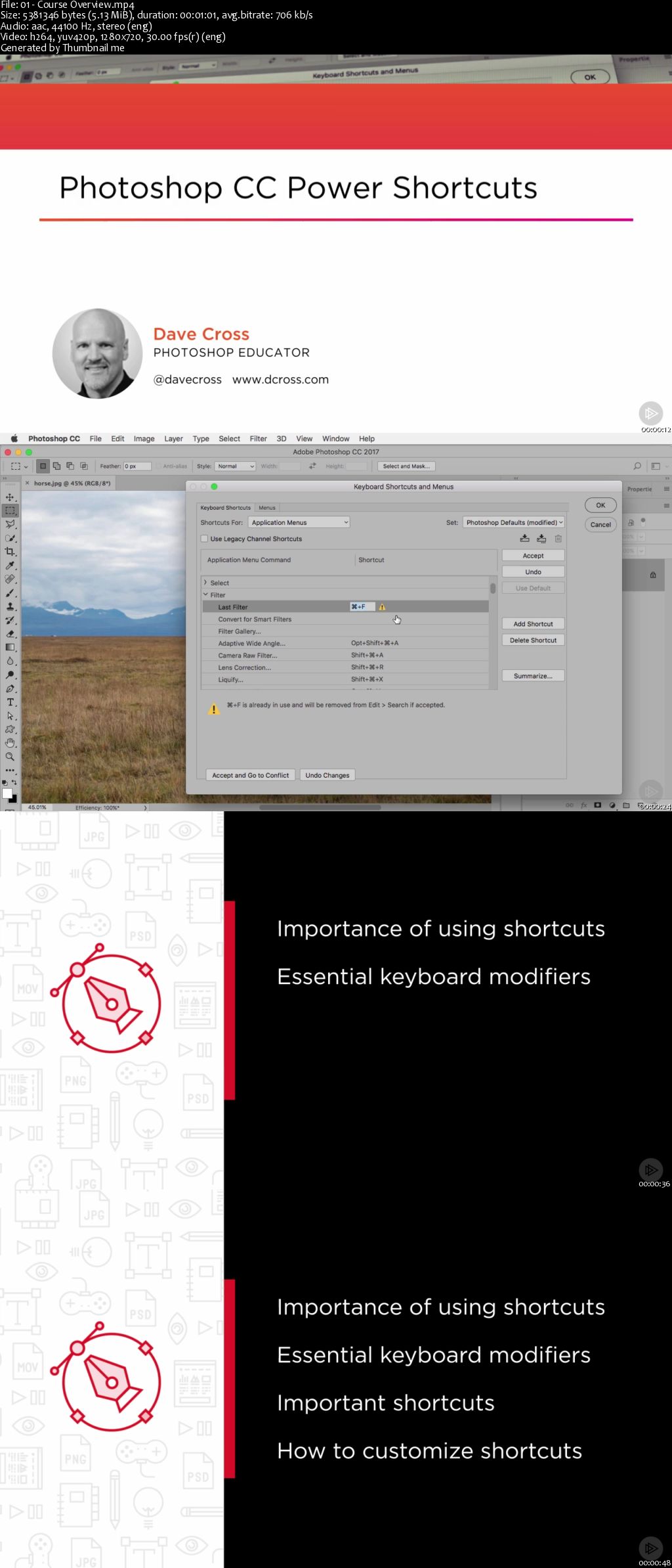 One of the easiest ways to save time in Photohsop is by using keyboard shortcuts. This course will help you learn how to implement keyboard shortcuts into your workflow.