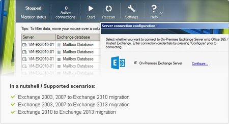You don’t need to upgrade your existing Exchange 2003 installation to be able to migrate from Exchange 2003 to Exchange 2010, or 2013. The program will let you do that without the necessity of pre-installing Microsoft Exchange 2007 first. As a result, keeping your servers up-to-date and moving to Exchange 2010 or 2013 requires fewer resources and costs you less money.