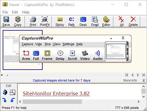 Capture it all – screen images, Windows Store apps (using touch), scrolling areas, video and audio with CaptureWizPro. Start captures from a small capture bar that hides at the edge of your screen. Or use hot keys or the taskbar icon. Simple tools, visible over any background, guide you through the three quick steps. Capture anything, even tricky items like open menus, mouse pointers and screen savers. This new version is compatible with Windows 10 and touch screen input!………
