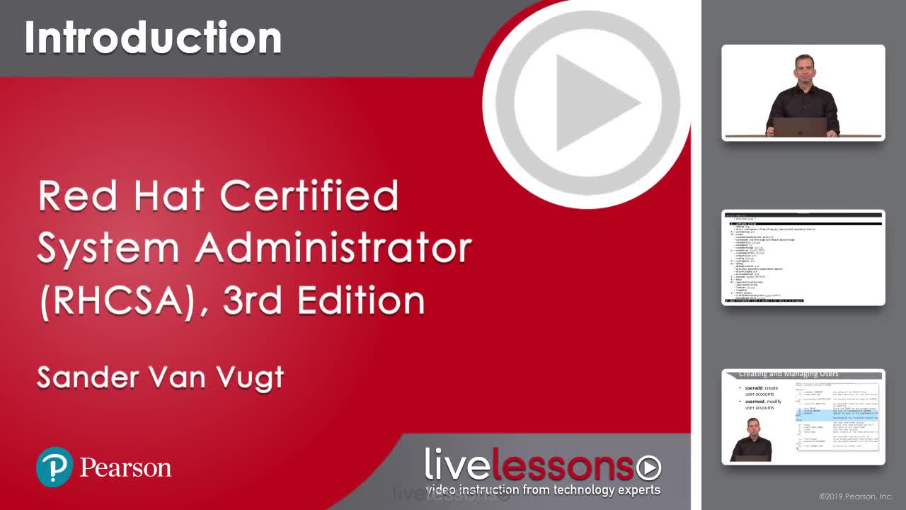 Red Hat Certified System Administrator (RHCSA) Complete Video Course 3rd Edition has more than 16 hours of comprehensive video training—which includes whiteboard concept teaching, live CLI work, screencast teaching, and hands-on labs—so you have everything you need to study for and pass the RHCSA exam. This new edition of the best-selling RHCSA Complete Video Course, is fully updated for the RHEL 8 version of the exam.