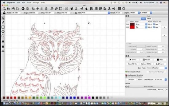 – Apply settings like power, speed, number of passes, cut order, brightness & contrast, dithering mode, and much more