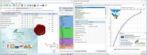 NovoSPT is a unique geotechnical software designed for correlating SPT blow counts (N) to various soil properties using 300 correlations.