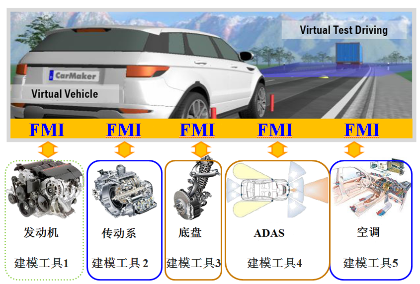 FMI是开放的第三方标准接口协议,任何软件均可以基于该协议开发接口,实现模型交互和联合仿真,用于联合仿真的FMU中包含求解器。基于FMI交互的模型是黑盒模型,有助于保护模型所有者的知识产权。目前有52个软件支持FMI接口。