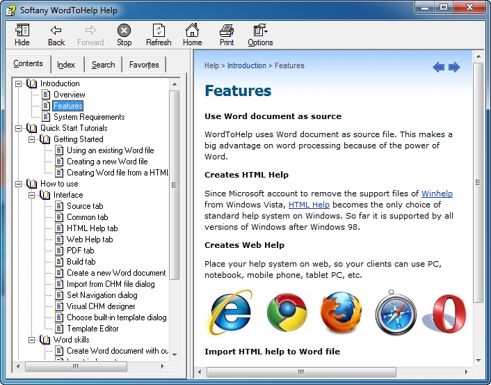 Supports importing CHM file – convert existing CHM file to Word document so that you can transfer your previous works on other help authoring tools to Softany WordToHelp.