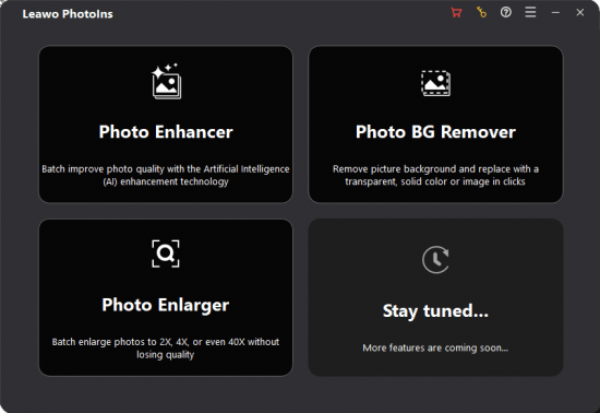 Leawo PhotoIns is designed as an all-featured photo editor which consists of 2 main modules, including Photo Enhancer and Photo BG Remover. Photo Enhancer is a professional and AI-powered photo enhancer to improve your photo quality in batch.