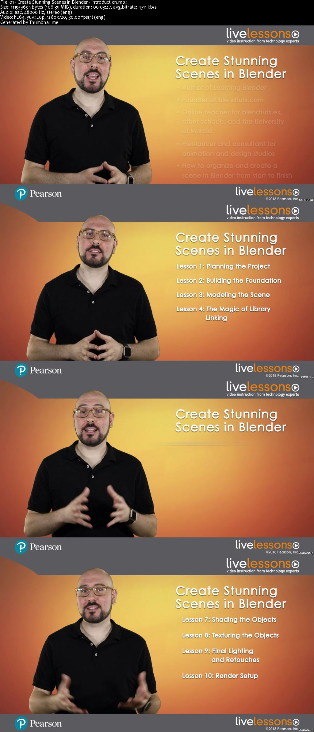 This video training takes you through the entire process of organizing, modeling, texturing, lighting, rendering, and compositing a scene in Blender, the popular open source and free 3D-creation suite.