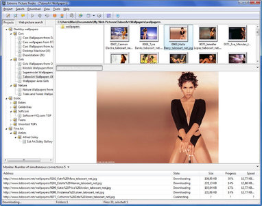 Don’t know where to start downloading? Extreme Picture Finder offers a built-in online projects database with thousands of website addresses sorted by category: Desktop Wallpapers, Cars, Girls, Nature and many, many others.