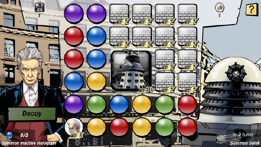 Game play changes from level to level with increasing complexity while the recognizable detachable tile mechanic allows us to stay accessible to gamers of all levels of experience. In Infinity, characters like the Daleks, Missy, Jo Grant, and the Doctor literally appear on the board, as do opponents like robots, bombs, firewalls, and time vortexes. You have never played anything like this before. The game design is an innovation on the award-winning puzzle mechanic used in Doctor Who: Legacy — think of this as the first time you have had the chance to play through original Doctor Who stories from start to finish.
