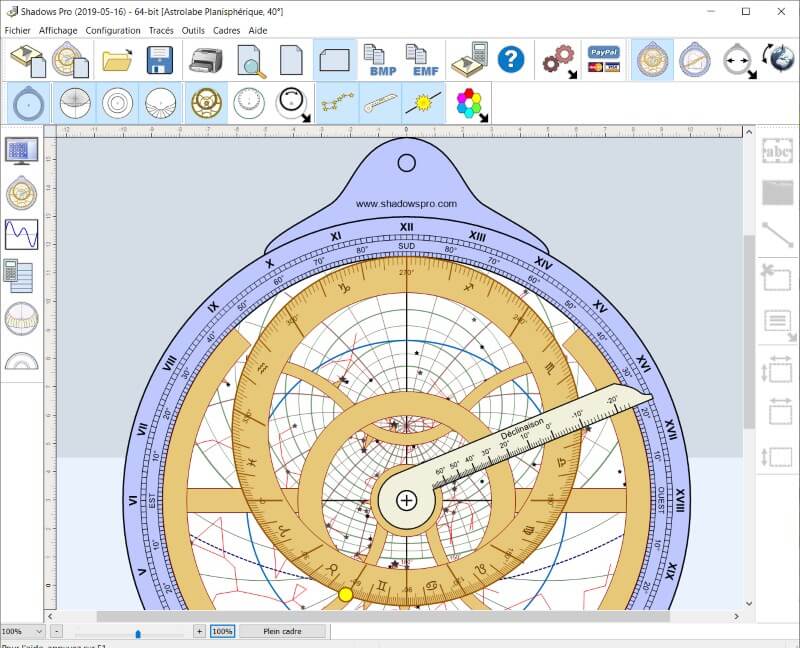 Shadows Pro is a software package for designing sundials and astrolabes, developed by a French amateur astronomer François Blateyron. Shadows allows you to easily create a sundial customized for your location and then to build it thanks to printouts to scale. Shadows is free in its base level. It is used by thousands of users around the world. Discover the world of sundials on this web site through educational pages and photo galleries.