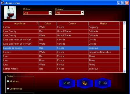 Jeroboam can maintain the wines database in adding new appellations and the features (serving temperature, aging , pairing the dishes and marking best vintages). it is also possible to manage the following databases :