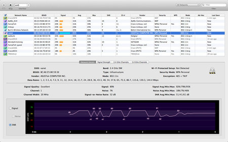 Scan, find, and troubleshoot wireless networks with WiFi Explorer. Quickly identify channel conflicts, signal overlapping or configuration problems that may be affecting the connectivity and performance of your home or office wireless network. Get an insight into the network details: name (SSID), MAC address (BSSID), device manufacturer, signal strength (RSSI), noise, channel, band, security configuration, supported data rates and much more.