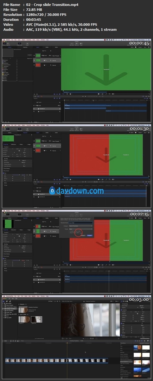 You will create 9 Transitions and publish them to Final Cut Pro X.