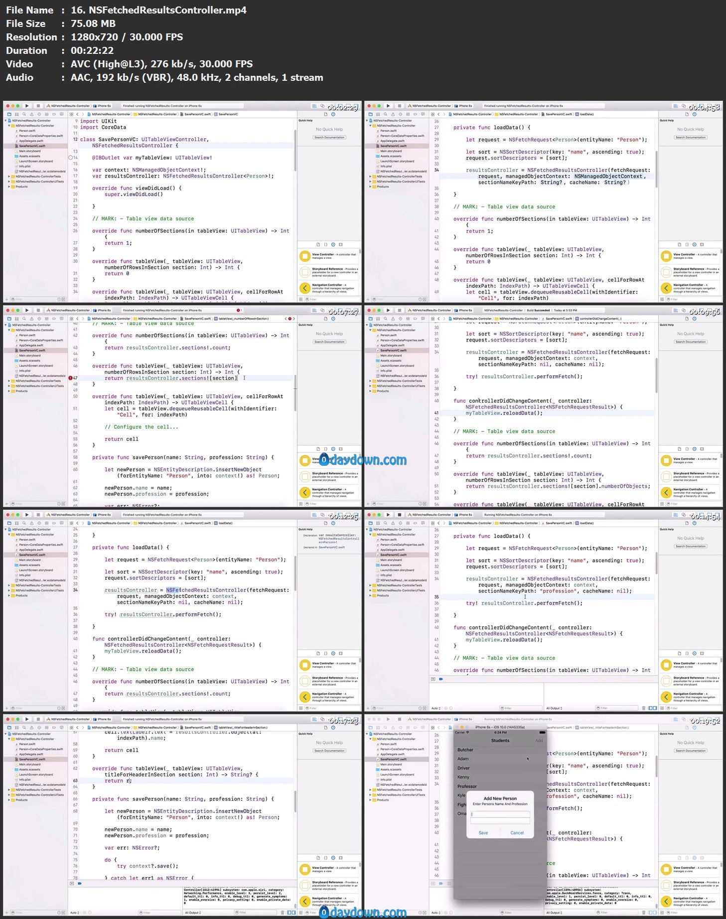Basic And Advanced Features Of SwiftWorking With Table ViewsAuto LayoutObject Oriented Programming In DepthModel View Controller(MVC) ConceptTable ViewsAdvanced Features Of Table ViewsAnimationsPlaying AudioMaps And GeolocationSaving Data With NSCodingSaving Data With Core DataCore Data In Depth Such As Advanced Fetching, Sorting, NSBatchUpdateRequest, NSFetchedResultsController And Much MoreWorking With JSON And APIsDownloading Images From The WebSaving Images In Core DataWorking With FirebaseAnd Much Much More