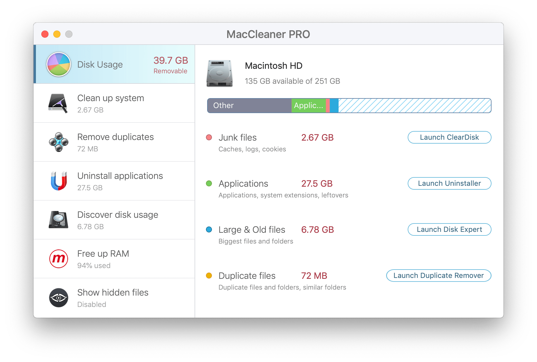 Your Mac needs to be cleared of junk files periodically if you wish to keep it working as fast as a new one. MacCleaner Pro provides a set of cleanup apps for that, which we call “must haves” for every self-respecting Mac owner.