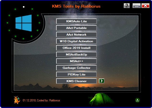 All-in-one collection of activators from Ratiborus for Windows XP, Vista, 7, 8, 8.1, 10, Server 2008, 2008 R2, 2012, 2012 R2, Office 2010/2013/2016/2019.