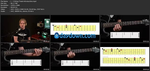 1 String Triads How to visualize how to play by the chord, charts, examples, and backing tracks