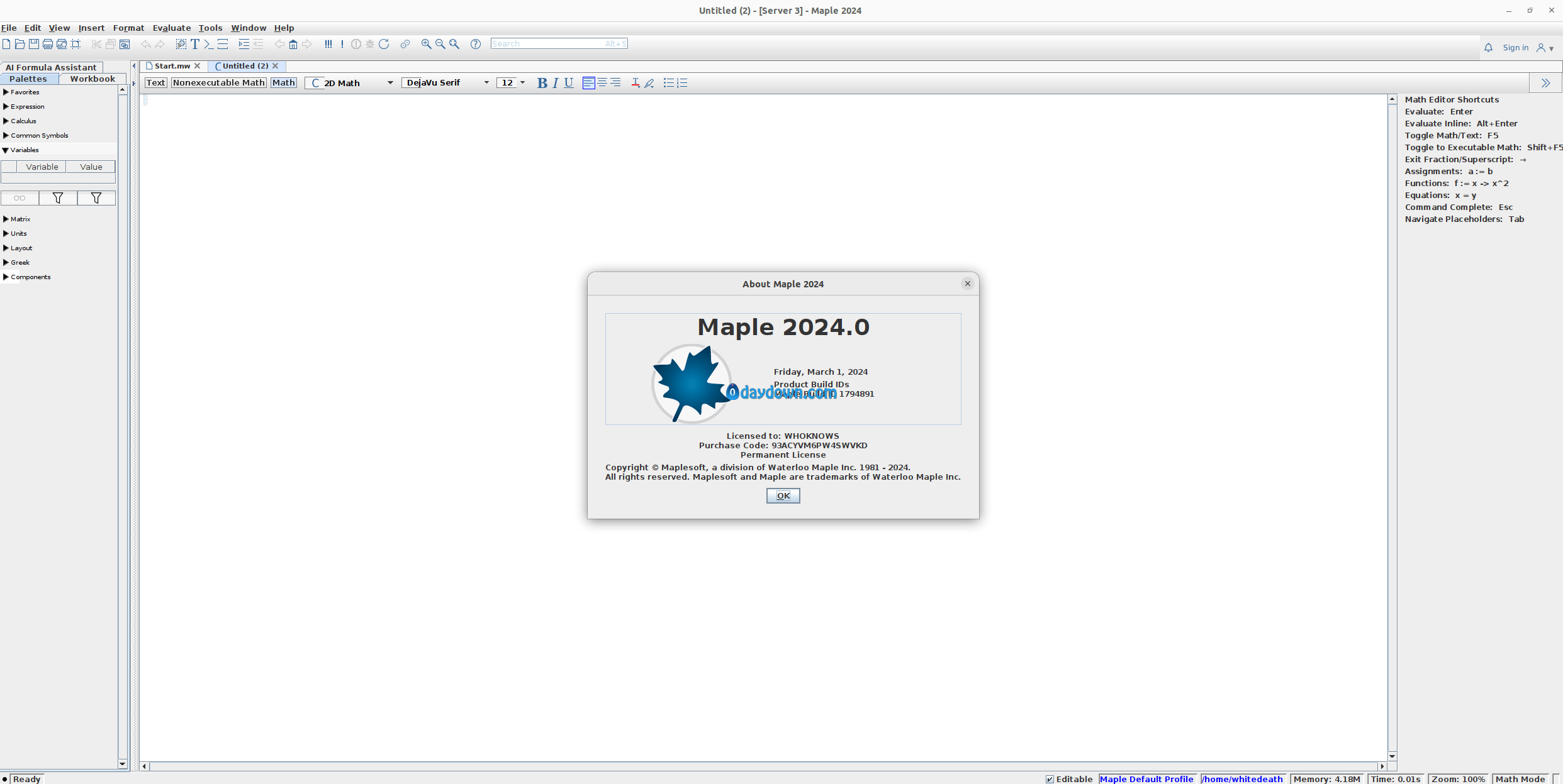 Maple 2024是一款功能强大且易于使用的数学软件,广泛应用于数学家、教育工作者、学生、工程师和科学家对数学问题进行分析、探索、可视化和解决。