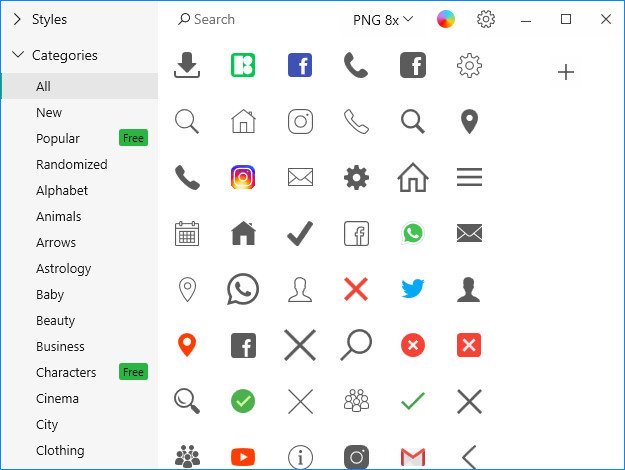 Find the icons you need and add them into any graphics design project thanks to this application, which bundles a generous icon collection and searching capabilities. Graphic designers and pretty much all users who need to personalize the looks of a software product or of a website will need, among many other things, a fresh set of icons that are suited for that application or webpage. In case creating a whole iconset from scratch may seem time-consuming and you are not willing to spend hours learning and exercising a new craft, a utility like Icons8 could be the solution you are looking for.
