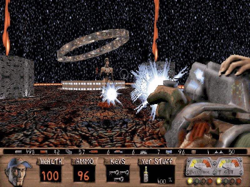 - Heal your wounds with alcohol and battle aliens redneck-style!